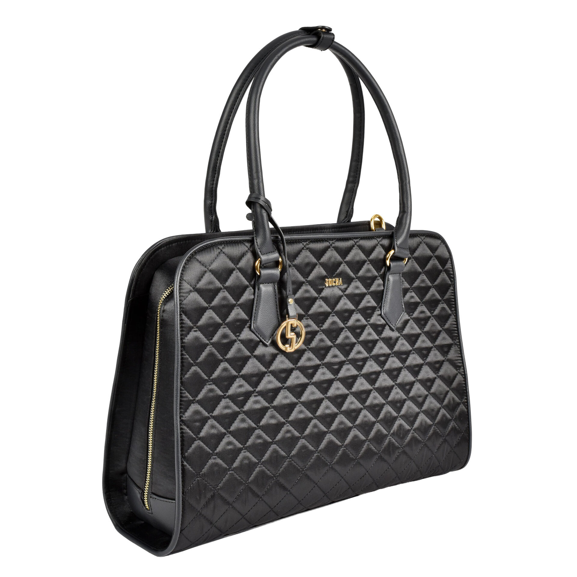 Klassisch in Schwarz, luxuriös im Finish: Die SOCHA Black Diamond 15.6″ – Gold ist gemacht für Frauen, die im Business nicht zwischen Stil und Funktion wählen wollen. Die edle Diamond-Steppung wirkt wie ein Fashion-Statement – innen wartet die typische SOCHA-Vollausstattung mit sicherem Laptopfach und smarter Organisation.